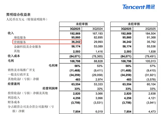要知道,2025 年腾讯三季度营销服务业务同比增长21%,达到362亿元,是妥妥的 “现金牛”。